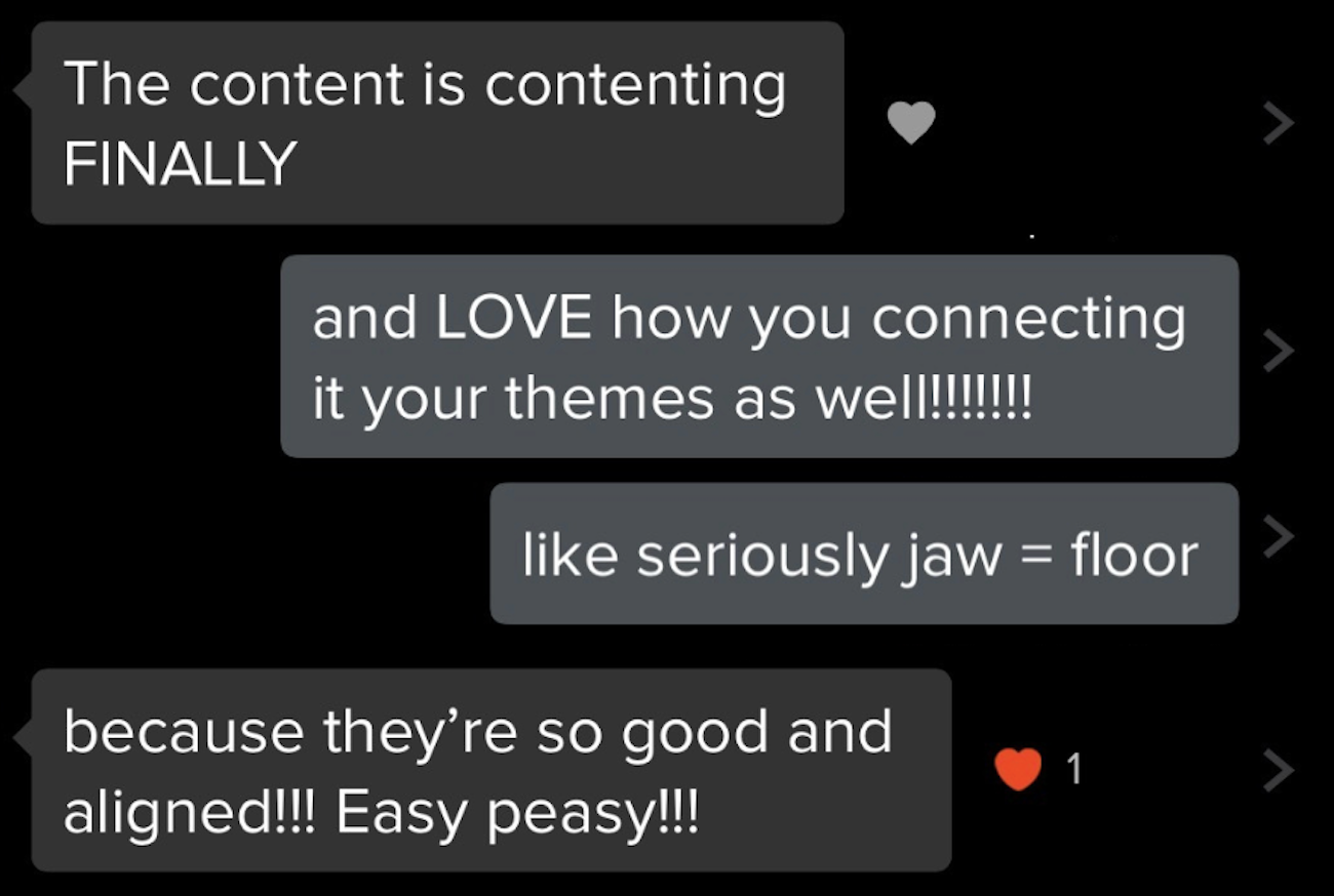 Now, I have an actual strategy when it comes to creating my content—it no longer feels daunting, but freaking exciting to create and post because I know I'm building a community and making real connections with those that vibe with me.