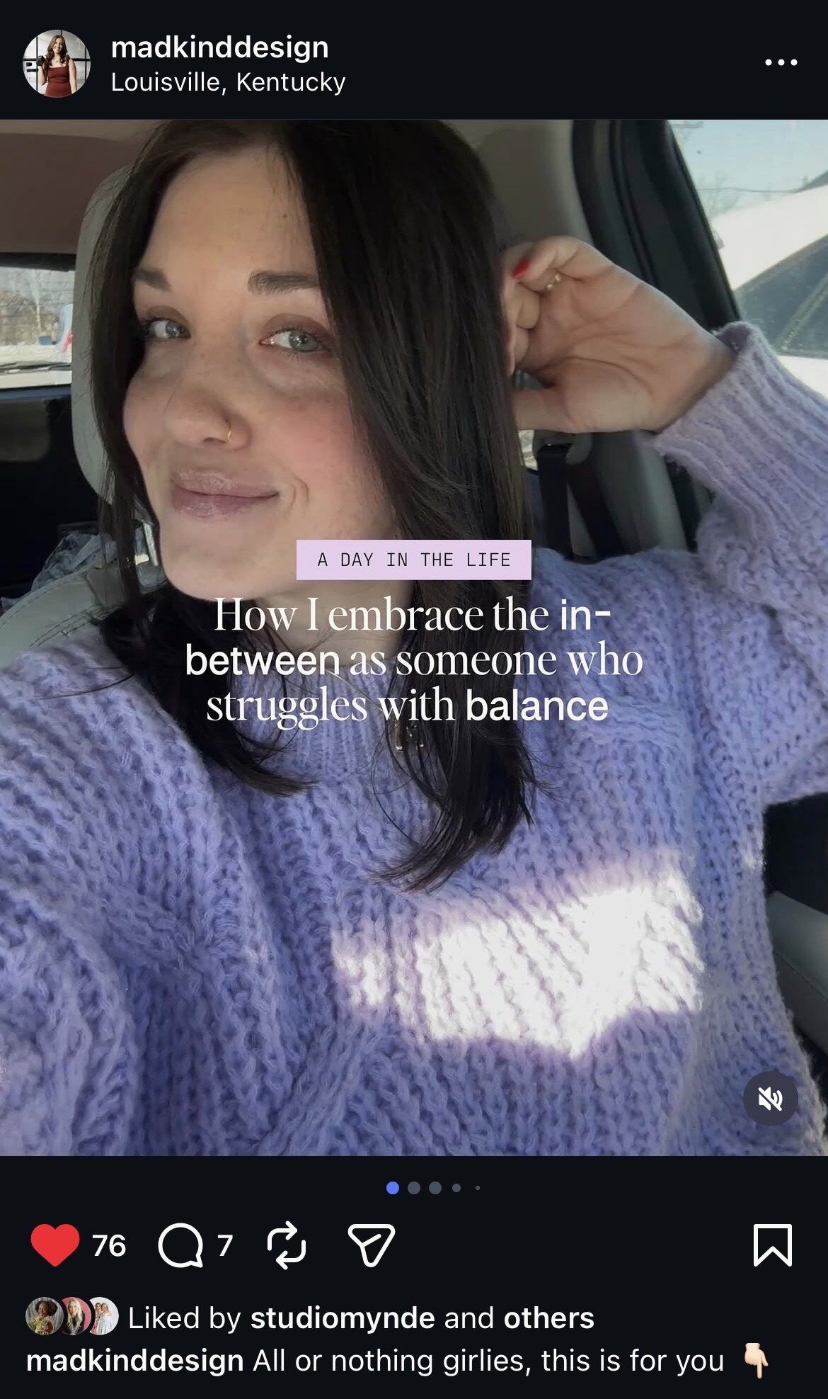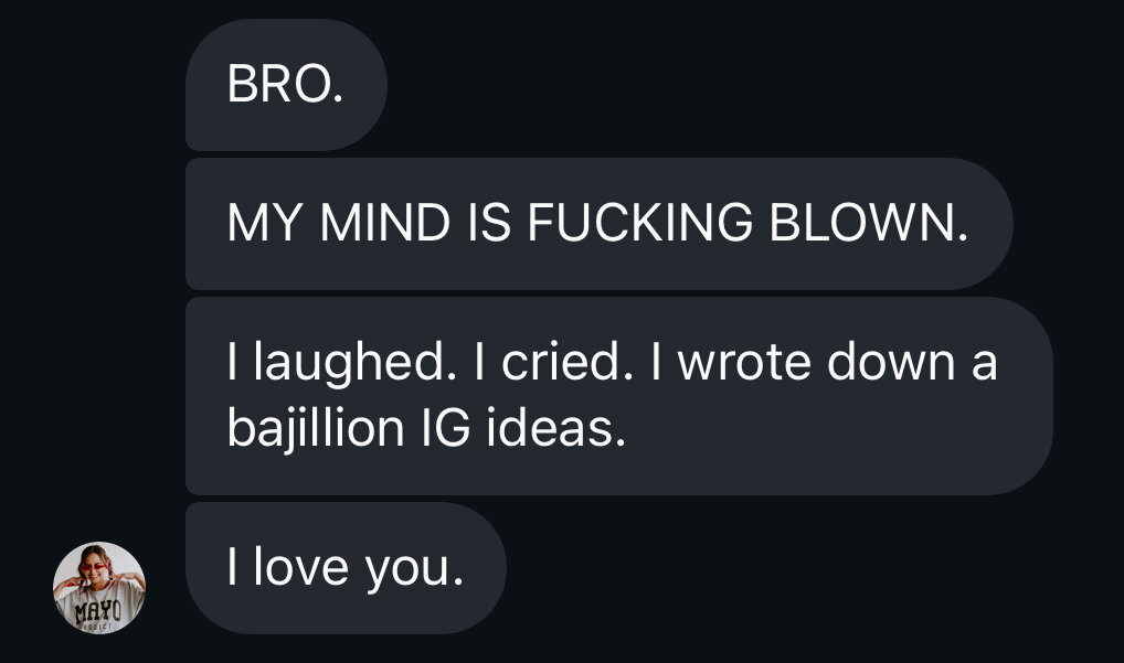 I feel like, after literal years, I am finally starting to connect with really cool people on Instagram. I’m having real conversations with people – it just feels way more fulfilling than worrying about reach. Working with you has helped me to open myself up more to the platform, I'm getting much more comfortable being vulnerable and authentic, and I have gotten a lot of great engagement and connections when I've done so.